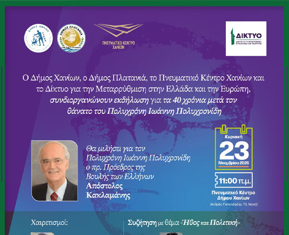 Θα ακολουθήσει ανοιχτή συζήτηση με θέμα «Ήθος και Πολιτική».