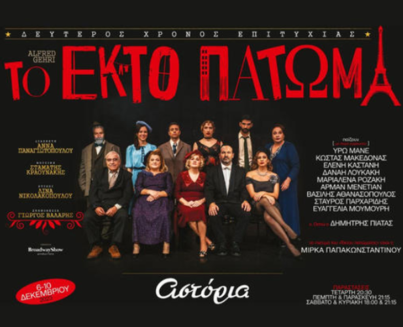 Τριάντα δύο χρόνια μετά την θρυλική πλέον παρουσίασή του στο θέατρο «Περοκέ» (1991-92) ο Γιώργος Βάλαρης σκηνοθετεί και αναβιώνει τη μουσική παράσταση «Το έκτο πάτωμα» με ένα επιτελείο σπουδαίων καλλιτεχνών. Με άξονα την κωμωδία που χαρακτηρίζει την επιτυχημένη διασκευή της Άννας Παναγιωτοπούλου στο δημοφιλές έργο του Αλφρέντ Ζερί -που έχει μεταφραστεί και παιχτεί με τεράστια επιτυχία σχεδόν σε όλο τον κόσμο από το 1938 ως σήμερα- ο Σταμάτης Κραουνάκης και η Λίνα Νικολακοπούλου δημιούργησαν ίσως τα πιο γνωστά και αγαπημένα τραγούδια που ακούστηκαν ποτέ τις τελευταίες δεκαετίες σε θεατρική παράσταση, ( «Τι ώρα είναι, τι μέρα είναι και ποιά χρονιά», «Το τραγούδι της κουτσομπόλας», «Το τραγούδι της ζήλειας», «Η κουπαστή» κ α).