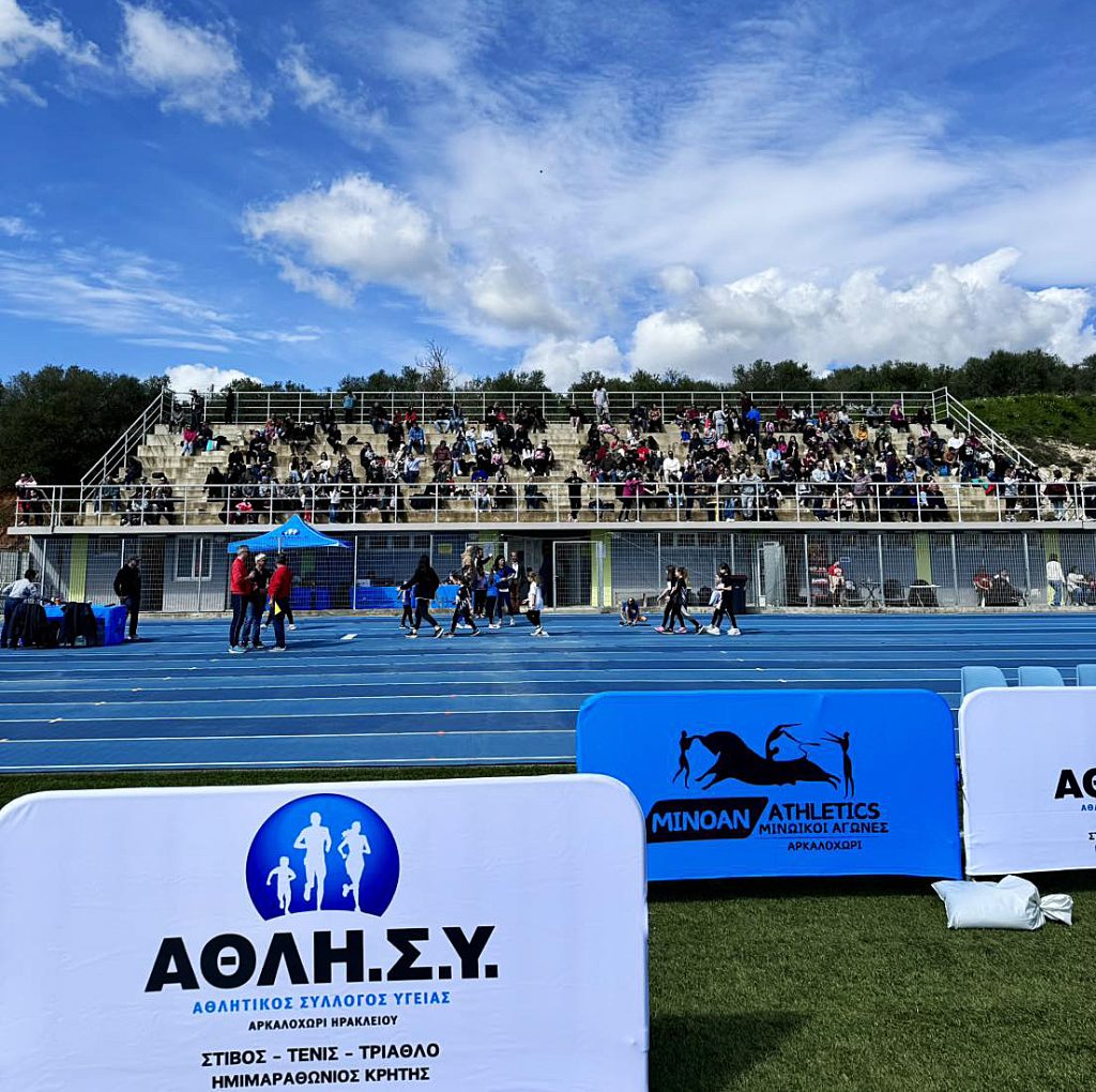 Οι πρώτοι επίσημοι αγώνες στίβου στο νέο Δημοτικό Στάδιο Αρκαλοχωρίου διεξήχθησαν με εκατοντάδες νέα παιδιά, που αγωνίστηκαν σε ένα στάδιο-κόσμημα, μετά την εγκατάσταση του νέου ταρτάν. Έργο που δρομολογήθηκε από το Υφυπουργείο Αθλητισμού. Ο αθλητισμός είναι ένα κοινωνικό αγαθό για να είναι προσβάσιμος σε όλους, σε κάθε γωνιά της χώρας μας! Πολλά συγχαρητήρια τόσο στα παιδιά, όσο και στους γονείς τους και τους διοργανωτές για τη συμβολή τους σε αυτή την επιτυχημένη μέρα.