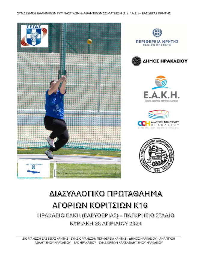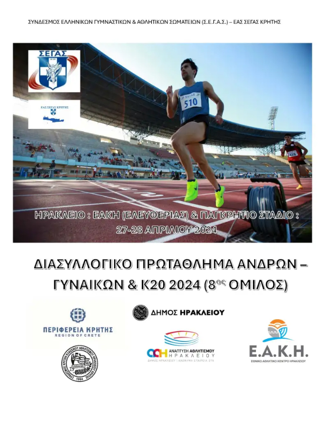 Το Σάββατο και την Κυριακή 27 και 28 Απριλίου 2024, η καρδιά του στίβου της Κρήτης θα κτυπά στο Ηράκλειο και συγκεκριμένα στο Παγκρήτιο στάδιο και στο Ε.Α.Κ.Η (στάδιο Ελευθερίας), όπου θα διεξαχθούν οι Παγκρήτιοι Διασυλλογικοί αγώνες Ανδρών – Γυναικών – Κ20 και Κ16.