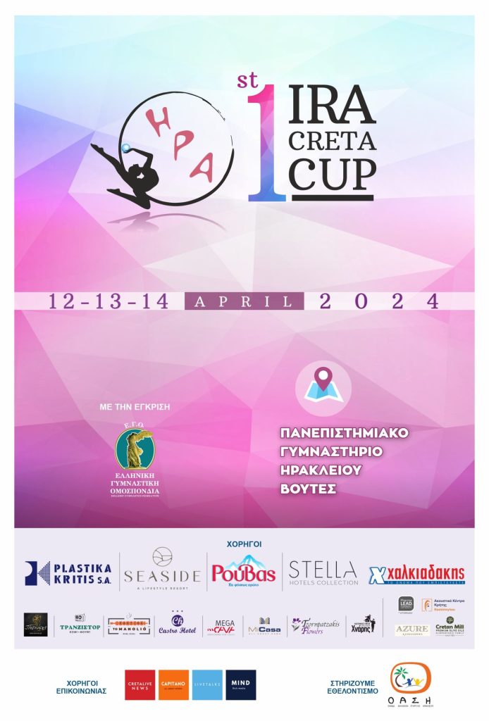 Το αθλητικό σωματείο Ηράκλειο Ρυθμός Άθληση – ΗΡΑ έχοντας ήδη την εμπειρία του 4ου Παγκρήτιου Meeting Ρυθμικής Γυμναστικής, μια διοργάνωση που πέρσι τέτοιο καιρό κατάφερε να γεμίσει τις κερκίδες του Πανεπιστημιακού Γυμναστηρίου Βουτών, μαζεύοντας σε ένα ταπί αθλήτριες απ΄ όλη την Κρήτη, διοργανώνει φέτος το 1ο ΗΡΑ Creta Cup.