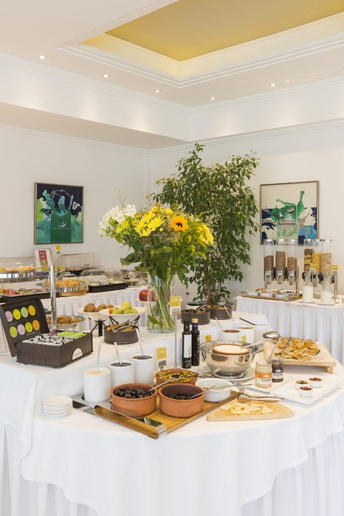 Επιλεγμένα έργα τέχνης από την συλλογή της οικογένειας συμβάλλουν διακριτικά στην αισθητική εμπειρία των χρηστών του ξενοδοχείου. Αλλά σαφώς οι επιλογές των καλλιτεχνών δημιουργών των έργων τέχνης που φιλοξενούνται στους κύριους χώρους της τραπεζαρίας και του καφέ, προφανώς έχει μελετηθεί για το νόημα και τα πολλαπλά μηνύματα που εκπέμπουν ολιστικά στην οπτική αφήγηση που επενδύει την λειτουργικότητα τους