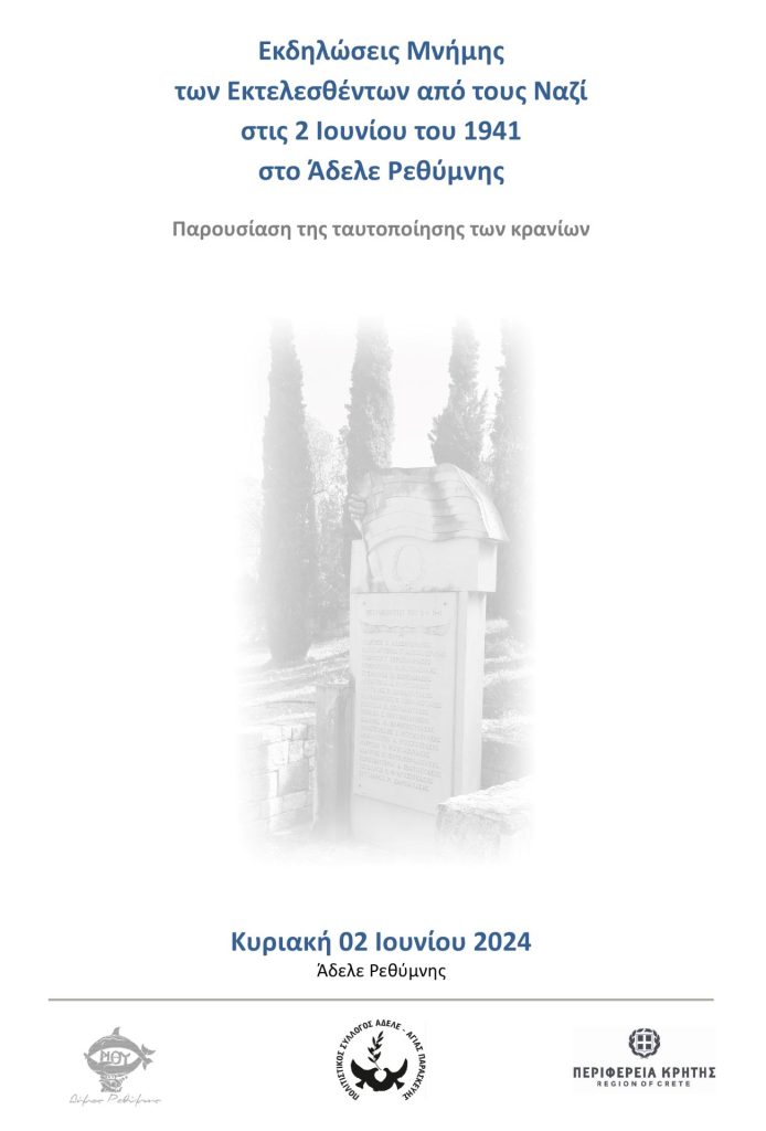 Την διοργάνωση της εκδήλωσης με την παρουσίαση της ταυτοποίησης των κρανίων έχει ο Δήμος Ρεθύμνης με συνδιοργάνωση την Περιφέρεια Κρήτης και τον Πολιτιστικό Σύλλογο Άδελε-Αγίας Παρασκευής.