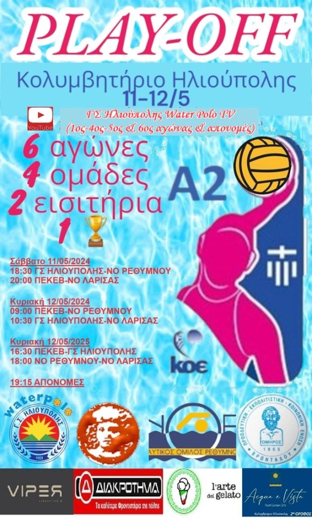 Η ομάδα του Ρεθύμνου στους αγώνες play off που φιλοξενήθηκαν στο κολυμβητήριο της Ηλιούπολης, έμεινε αήττητη και ο ΓΣ Ηλιούπολης έκανε μια ήττα. Συμμετείχαν οι τέσσερις ομάδες που κατέκτησαν τις δυο πρώτες θέσεις στο Νότιο και το Βόρειο όμιλο μετά τις έξι αγωνιστικές του πρωταθλήματος.