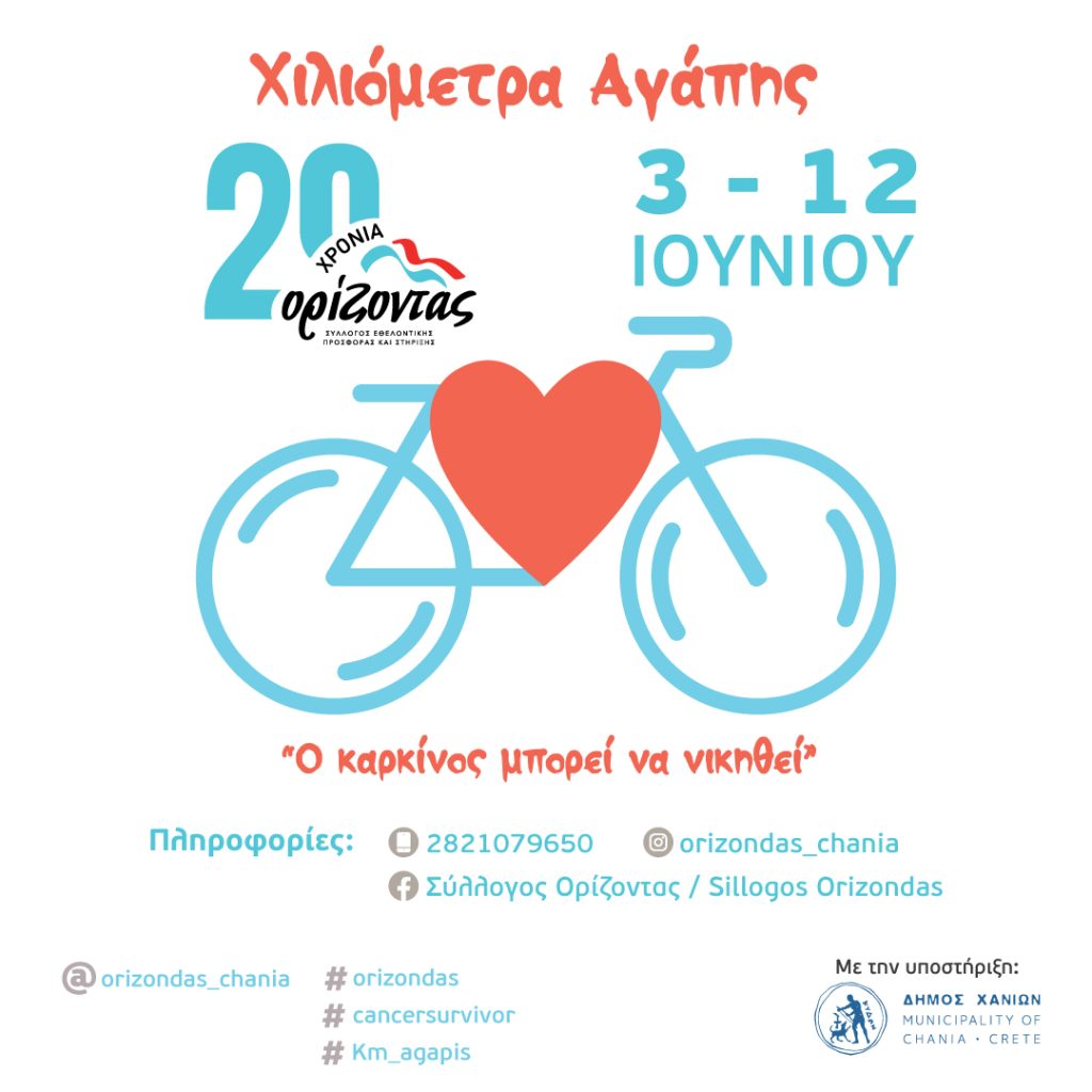Ο Σύλλογος “Ορίζοντας” με αφορμή την Παγκόσμια Ημέρα Ποδηλάτου (3 Ιουνίου) και την Παγκόσμια Ημέρα Επιζώντων του Καρκίνου (1η Κυριακή του Ιουνίου) διοργανώνει και φέτος συμβολικό Ποδηλατικό Αγώνα σε virtual μορφή, για μικρούς και μεγάλους!