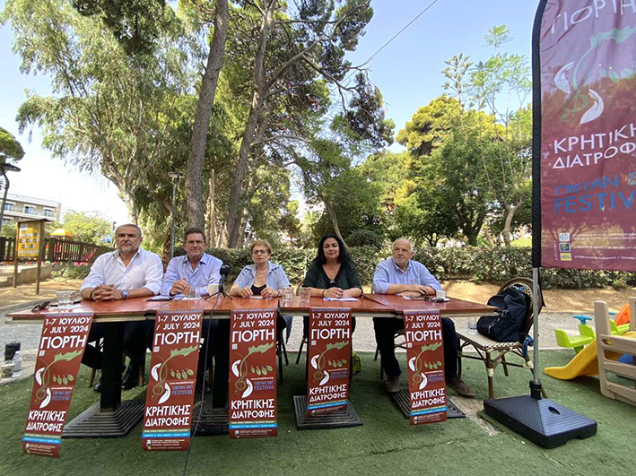 Το πρόγραμμα της Γιορτής Κρητικής Διατροφής 2024 παρουσίασαν κατά τη διάρκεια Συνέντευξης Τύπου στον Δημοτικό Κήπο Ρεθύμνου, η Αντιπεριφερειάρχης Ρεθύμνου κ. Μαρία Λιονή, ο Αντιπεριφερειάρχης Επιχειρηματικότητας Κρήτης κ. Μιχάλης Βάμβουκας, ο Αντιδήμαρχος Ρεθύμνου κ. Στέλιος Ξεζωνάκης ως εκπρόσωπος του Δήμου Ρεθύμνης (ο αρμόδιος Αντιδήμαρχος κ. Μάνος Τσάκωνας απουσίαζε για λόγους υγείας), ο Αντιπρόεδρος του Επιμελητηρίου Ρεθύμνου κ. Μανώλης Ψαρουδάκης και η Διευθύντρια του Γραφείου Πολιτισμού Δήμου Ρεθύμνης κ. Γιούλη Μπάκα.