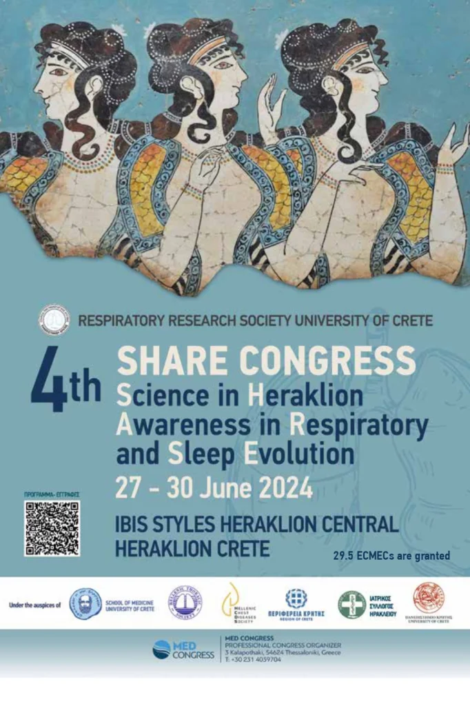 Ξεκινάει σήμερα το μεγάλο διεθνές συνέδριο με τίτλο 4th SHARE CONGRESS – Science in Heraklion Awareness in Respiratory and sleep Evolution που διοργανώνει η Εταιρεία Πνευμονολογικής Έρευνας Πανεπιστημίου Κρήτης και η Πανεπιστημιακή Πνευμονολογική κλινική.
