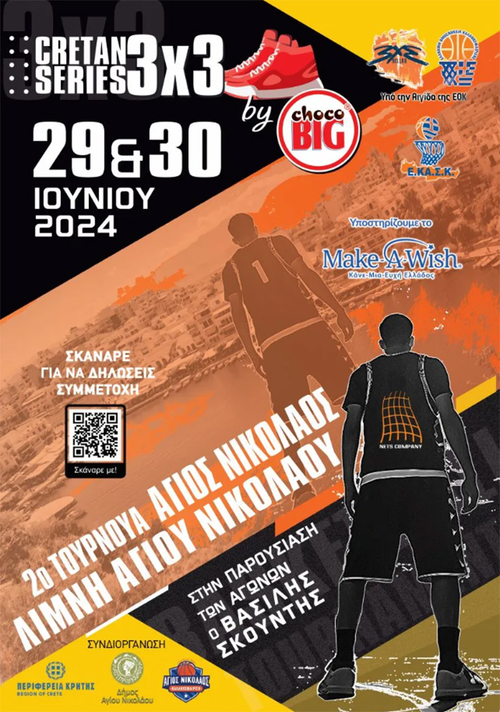 Το 2ο τουρνουά μπάσκετ 3X3 Cretan Series θα πραγματοποιηθεί στις 29 και 30 Ιουνίου 2024 στον Άγιο Νικόλαο (Λίμνη Αγ. Νικολάου) με τη συνδιοργάνωση της Περιφέρειας Κρήτης και του δήμου Αγ. Νικολάου.