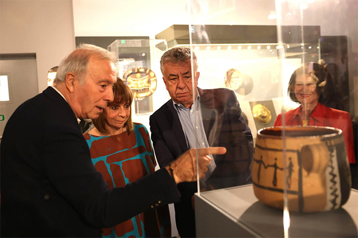Την Πρόεδρο της Δημοκρατίας Κατερίνα Σακελλαροπούλου είχε υποδεχτεί νωρίτερα ο Περιφερειάρχης Κρήτης Σταύρος Αρναουτάκης και ο αρχαιολόγος, καθηγητής Νίκος Σταμπολίδης στο Μουσείο της Ελεύθερνας, όπου και έγιναν τα εγκαίνια της Έκθεσης με τίτλο: «Πάμπλο Πικάσο. Η Χαρά της ζωής» με έργα που χάρισαν η Παλόμα Πικάσο, κόρη του Πάμπλο Πικάσο, και το Μουσείο του Βατικανού για να συντροφεύσουν με τις αρχαιότητες της περιοχής.