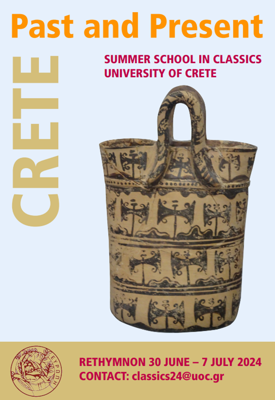 Την Κυριακή 7 Ιουλίου 2024 ολοκληρώθηκαν με μεγάλη επιτυχία οι εργασίες του Θερινού Σχολείου που διοργάνωσε για πρώτη φορά ο Τομέας Κλασικών Σπουδών του Τμήματος Φιλολογίας του Πανεπιστημίου Κρήτης με θέμα «Το Παρελθόν και το Παρόν της Κρήτης» (Summer School in Classics: Crete Past and Present).