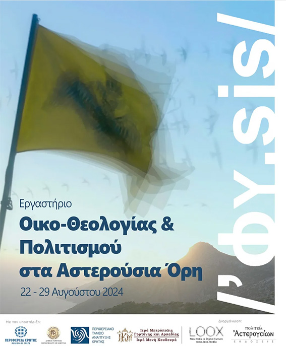 Διοργάνωση ερευνητικού προγράμματος “Εργαστήριο Οικο-Θεολογίας και Πολιτισμού στα Αστερούσια Όρη: /φυ.sis/”, το οποίο θα πραγματοποιηθεί από τις 22 έως τις 29 Αυγούστου στα Αστερούσια Όρη και την Ιερά Μονή Κουδουμά, σε συνεργασία με την Περιφέρεια Κρήτης, τον Δήμο Γόρτυνας και τον Οργανισμό Έρευνας, Καινοτομίας και Πολιτισμού LOOX.