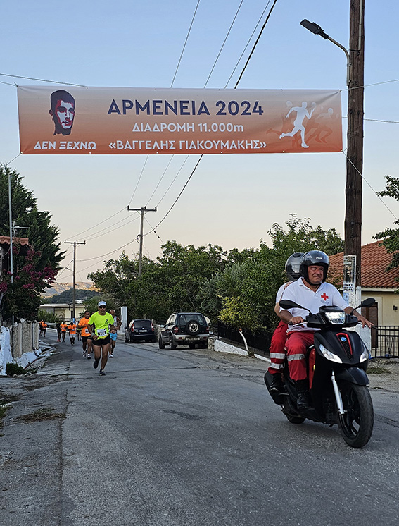 Στο αγωνιστικό κομμάτι της ημέρας η διαδρομή των 11km ξεκίνησε με αφετηρία το χωριό Μύρθιο, πέρασε από το χωριό Σελί (από το οποίο έχει καταγωγή ο πατέρας του Βαγγέλη Γιακουμάκη), αμέσως μετά από τα Γουλεδιανά περνώντας και από την Καρέ για να καταλήξει μέσα στον περιβάλλοντα χώρο της εκδήλωσης, και στον τερματισμό δίπλα από το γήπεδο των Αρμένων.