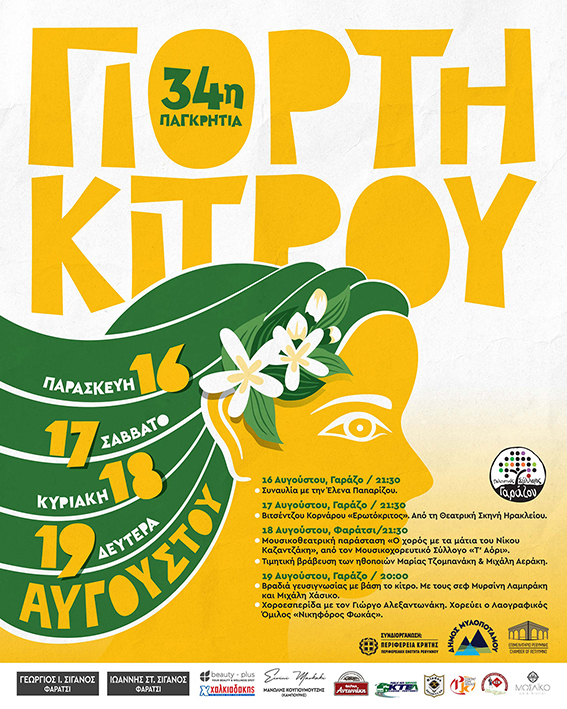 Η 34η Παγκρήτια Γιορτή Κίτρου πραγματοποιήθηκε σε συνδιοργάνωση με την Αντιπεριφέρεια Ρεθύμνου – Περιφέρεια Κρήτης, υπό την αιγίδα του Δήμου Μυλοποτάμου και του Επιμελητηρίου Ρεθύμνου.