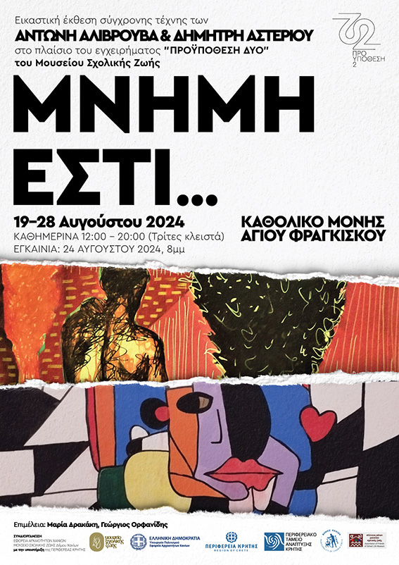«ΜΝΗΜΗ ΕΣΤΙ…»: Εικαστική έκθεση σύγχρονης τέχνης των Αντώνη Αλιβρούβα & Δημήτρη Αστερίου στο Καθολικό της Μονής του Αγίου Φραγκίσκου, στα Χανιά, 19-28 Αυγούστου 2024.