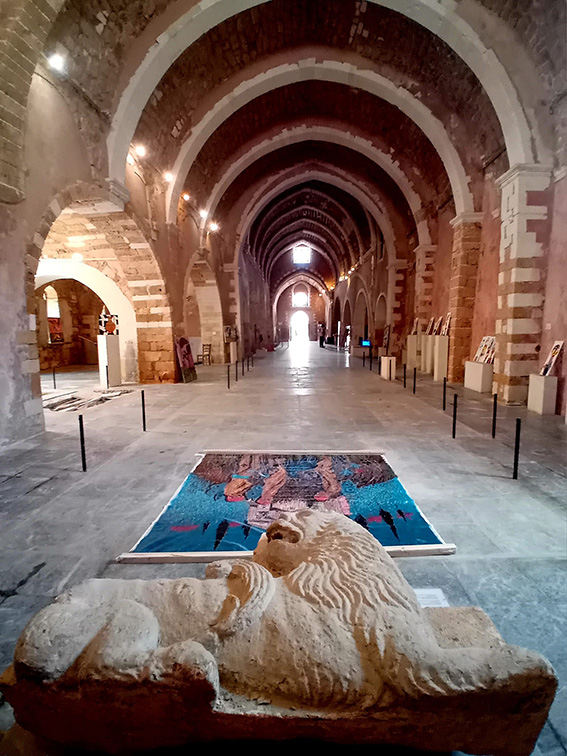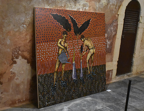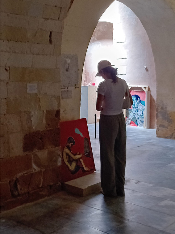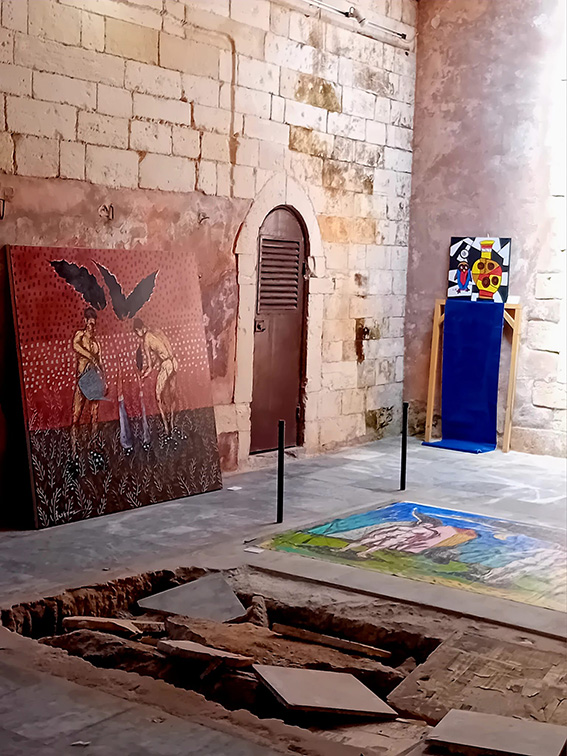 Μ. Δ.: H έκθεση αυτή είναι αποτέλεσμα μιας τιμητικής πρότασης από την Εφορεία Αρχαιοτήτων και συγκεκριμένα της Προϊσταμένης της Εφορείας Αρχαιοτήτων Χανίων Δρ. Ελένης Παπαδοπούλου προς το Μουσείο Σχολικής Ζωής Δήμου Χανίων για ένα επόμενο βήμα του καινοτόμου εγχειρήματος ΠΡΟΫΠΟΘΕΣΗ 2 που σχεδίασε και υλοποιεί από το 2023, με στόχο τον σεβασμό στην διαφορετικότητα και τη βιωματική άσκηση σε μια δυάδα μέσω της διεργασίας μιας εικαστικής έκθεσης σύγχρονης τέχνης. Σκοπός να συνειδητοποιήσουν οι συμμετέχοντες καλλιτέχνες, επιμελητές, οργανισμοί, αποδέκτες ότι η διαφορετικότητα δεν είναι απειλή για τη μεταγλώσσα των έργων τέχνης και για το νόημα του εκθεσιακού αφηγήματος, αλλά πλούτος και άσκηση όλων. Η έκθεση «ΜΝΗΜΗ ΕΣΤΙ…» των ζωγράφων Αλιβρούβα και Αστερίου προτείνει τη δυνατότητα πρόσληψης και απόκρισης της εικαστικής δημιουργίας αναδεικνύοντας τη μοναδικότητα του δημιουργικού διαλόγου ανάμεσα σε δύο καλλιτέχνες με διαφορετικό εικαστικό αποτύπωμα, σε δύο επιμελητές από διαφορετικά επιστημονικά πεδία, σε δύο οργανισμούς με διαφορετική λειτουργία, σε ένα μνημείο με πολλαπλές και κυρίαρχες μνημονικές εγγραφές. Το καθολικό της Μονής του Αγίου Φραγκίσκου εκτός της ιστορικότητας του στον χώρο και στον χρόνο, έχει εγγραφεί κυρίαρχα στις συνειδήσεις της κοινότητας ως ατμοσφαιρικός χώρος διαφύλαξης της πολιτιστικής κληρονομιάς, αφού φιλοξένησε για πολλά χρόνια τις συλλογές του Αρχαιολογικού Μουσείου Χανίων.