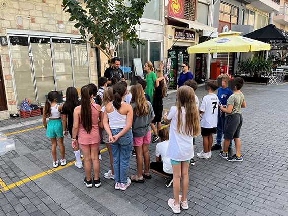 Με τη βοήθεια των μικρών μαθητών και των εκπαιδευτικών των Σχολείων, εθελοντές της Ομάδας «Κρητών Δράσεις & Αποδράσεις», υπό την καθοδήγηση του ψηφιδογράφου Νικόλα Μανιουδάκη δημιουργούν τις τελευταίες μέρες ψηφίδα-ψηφίδα το κολάζ που δημιούργησαν τα ίδια τα παιδιά εμπνευσμένα από τον Μινωικό Πολιτισμό.