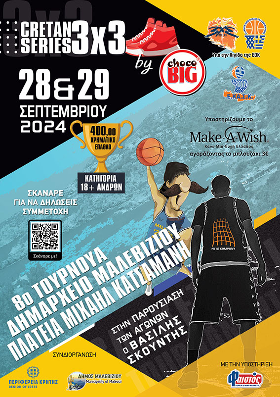 Η φετινή διοργάνωση του Τουρνουά 3×3 Basketball «Cretan Series» υποστηρίζει τον μη κερδοσκοπικό οργανισμό «Make-Α-Wish» (Κάνε μια ευχή) και ζητεί την υποστήριξη όλων σε αυτή τη σημαντική κοινωνική δράση.