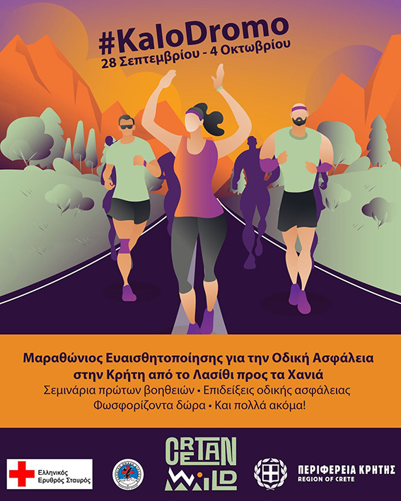Το @cretanwild και η υπερμαραθωνοδρόμος @livehappyrunfree , σε προσκαλούν σε έναν μοναδικό 7ήμερο μαραθώνιο που θα διεξαχθεί σε ολόκληρη την Κρήτη, από το Λασίθι μέχρι τα Χανιά. Η Ελένη θα τρέχει έναν μαραθώνιο την ημέρα, με στάσεις σε χωριά καθ’ όλη τη διαδρομή ευαισθητοποιώντας καθώς διασχίζει το νησί. Θα υπάρξει μια κύρια εκδήλωση σε κάθε μία από τις 4 μεγάλες πόλεις Άγιο Νικόλαο, Ηράκλειο, Ρέθυμνο και Χανιά με σεμινάρια πρώτων βοηθειών, ομιλίες από κορυφαίους ειδικούς στην οδική ασφάλεια, επιδείξεις, φωσφορίζοντα δώρα και πολλά άλλα!