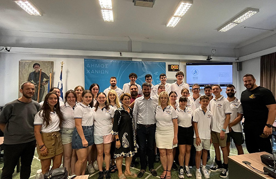 Τα νεαρά μέλη της Ομοσπονδίας, υποδέχθηκαν στην αίθουσα του Δημοτικού Συμβουλίου ο Δήμαρχος Χανίων, Παναγιώτης Σημανδηράκης, ο Αντιδήμαρχος Τουρισμού, Νεκτάριος Ψαρουδάκης και η Αντιδήμαρχος Κοινωνικής Πολιτικής, Ελένη Ζερβουδάκη.