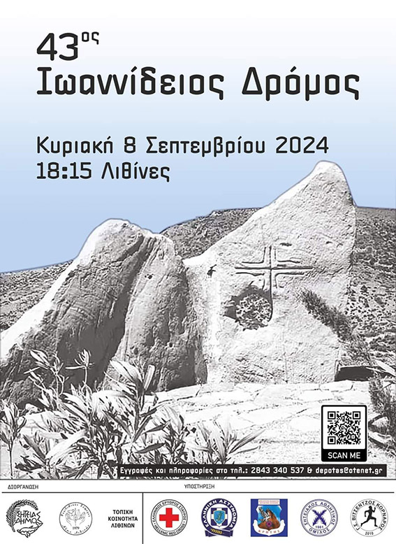 Ο Δήμος Σητείας, ο Πολιτιστικός Σύλλογος Λιθινών και η Tοπική Kοινότητα Λιθινών διοργανώνουν τον αγώνα δρόμου σε δημόσια οδό με την επωνυμία «Ιωαννίδειος Δρόμος 2024».
