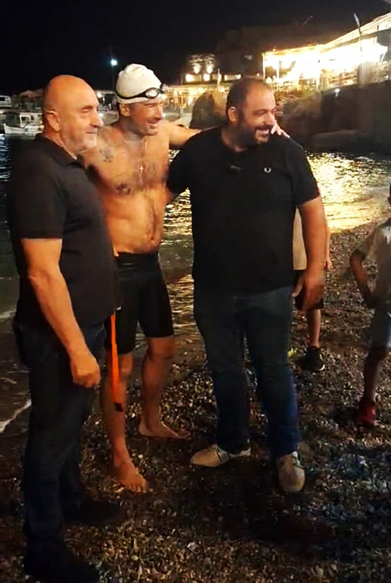 Πιο συγκεκριμένα, ο αθλητής ξεκίνησε το ταξίδι του από το Σαρακήνικο της Γαύδου στις 5:30 τα ξημερώματα της Δευτέρας 2/9 και βγήκε στην ακτή των Σφακίων λίγο μετά τις 21:00 το βράδυ. Εκεί τον περίμενε ενθουσιώδης υποδοχή από πολύ κόσμο που είχε συγκεντρωθεί για να χειροκροτήσει το κατόρθωμά του. Ανάμεσα τους ήταν ο Δήμαρχος Σφακίων, κ. Γιάννης Ζερβός, και οι αντιδήμαρχοι κ. Γιάννης Μπολιώτης, κ. Γιάννης Μπραουδάκης, κ. Βαρδής Γύπαρης, και κ. Γιώργος Καγιαδάκης.