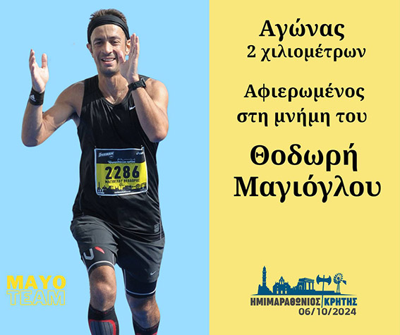 Ο Θοδωρής Μαγιόγλου άφησε την τελευταία του πνοή στις 17/04/2024 έπειτα από γενναία μάχη με την επάρατη νόσο. Ο Θοδωρής ήταν εν ενεργεία ιπτάμενος στα μαχητικά αεροσκάφη mirage 2000-5, πατέρας 2 ανήλικών αγοριών. Ο Θοδωρής είχε τερματίσει πολλούς αγώνες μεγάλων αποστάσεων βουνού και δρόμου, τρίαθλου, ποδηλασίας βουνού και δρόμου με πολλές διακρίσεις, μέσα σε αυτούς και ο Ημιμαραθώνιος Κρήτης ένας αγώνας που διοργανώνεται στη γενέτειρά του. Σε πολύ προχωρημένο στάδιο της ασθένειας του κατάφερε να προκριθεί στον τελικό του πρωταθλήματος Γαλλίας e cycling αντιμέτωπος με υγιείς επαγγελματίες αθλητές εκπλήσσοντας τους Γάλλους γιατρούς του.