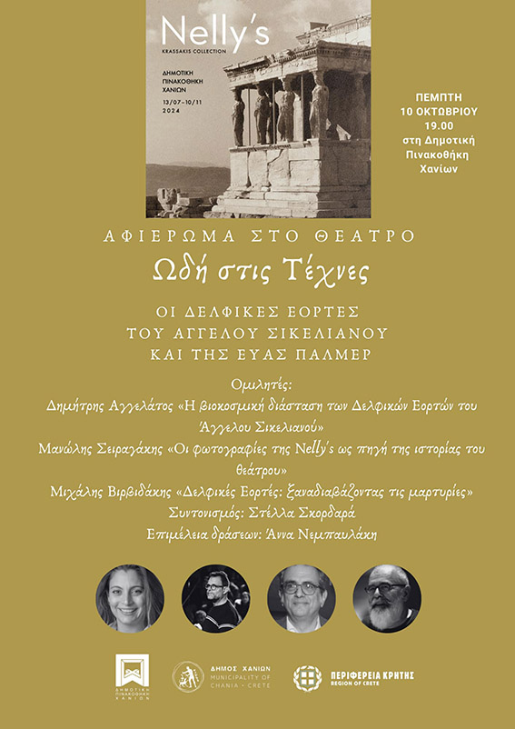 Μετά την επιτυχία των πρώτων δύο βραδιών της «Ωδής στις Τέχνες», οι πολιτιστικές δράσεις συνεχίζονται με τρεις ακόμη ξεχωριστές βραδιές, αφιερωμένες στο θέατρο, τη φωτογραφία και την αρχιτεκτονική, εμπνευσμένες από την έκθεση «Nelly’s – Συλλογή Κρασάκη» που φιλοξενείται στη Δημοτική Πινακοθήκη Χανίων.