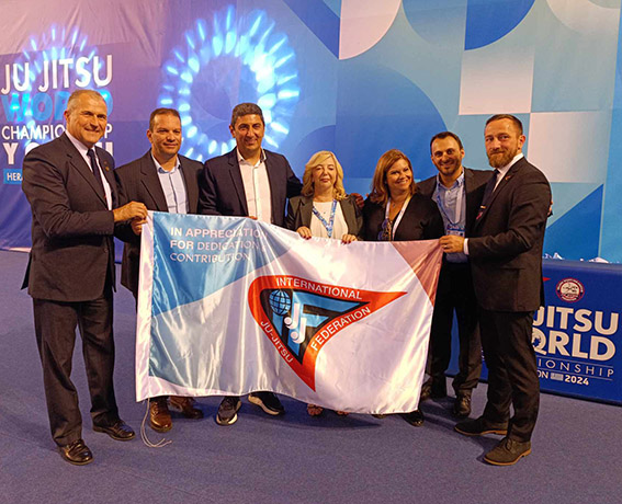 Τέλος, η πρόεδρος της Ελληνικής ομοσπονδίας, Μαρία Χαριτοπούλου, καλωσόρισε τις αποστολές όλου του κόσμου και ευχήθηκε καλή τύχη στην ελληνική ομάδα. «Καλοσωρίσατε στο μαγευτικό και πανέμορφο νησί της Κρήτης. Σας καλωσορίζουμε στο Παγκόσμιο πρωτάθλημα και θέλω να ευχαριστήσω τον πρόεδρο της JJIF κ. Παναγιώτη Θεοδωρόπουλο για την εμπιστοσύνη και την τιμή να διοργανώσουμε αυτό το μεγάλο γεγονός με 3.500 αθλητές από 67 χώρες του κόσμου, στο όμορφο νησί της Κρήτης. Εύχομαι σε όλους τα καλύτερα αποτελέσματα και καλούς αγώνες. Ευχαριστώ όσους συμβάλλουν σε αυτό το μεγάλο γεγονός για την πραγματοποίησή του και τέλος, στα ελληνόπουλα καλή δύναμη και να σηκώσουμε ψηλά την σημαία μας. Να είστε όλοι καλά».