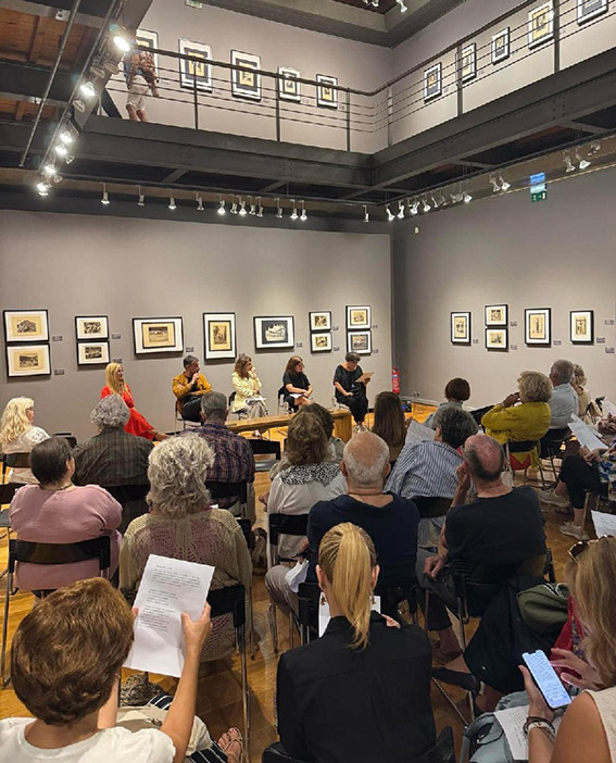 Η συζήτηση, με θέμα την αλληλεπίδραση της εικόνας και του λόγου, επικεντρώθηκε στη σημασία της εκπαίδευσης και της λογοτεχνίας στην ψηφιακή εποχή. Συμμετείχαν ως ομιλητές ο Νίκος Ερηνάκης, Επίκουρος Καθηγητής Πολιτικής Φιλοσοφίας και Φιλοσοφίας του Πολιτισμού στο Πανεπιστήμιο Κρήτης και ποιητής, η Άννα Κοντολέων, συγγραφέας, μεταφράστρια και θεατρολόγος, η Σίτσα Κοτσιφάκη, φιλόλογος, ενώ τον ρόλο της συντονίστριας είχε η Μαρίνα Αρετάκη, Ε.ΔΙ.Π. του Τμήματος Φιλολογίας του Πανεπιστημίου Κρήτης. Η βραδιά ανέδειξε τον ρόλο της παιδείας στην καλλιέργεια της σκέψης και της έκφρασης μέσω του γραπτού λόγου.
