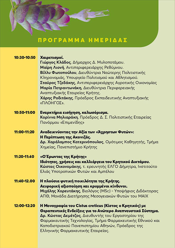 To 2010 η Πολιτιστική Εταιρεία Πανόρμου “Επιμενίδης” είχε διοργανώσει με μεγάλη επιτυχία την ημερίδα Ο ΦΥΤΙΚΟΣ ΠΛΟΥΤΟΣ ΤΗΣ ΚΡΗΤΗΣ.