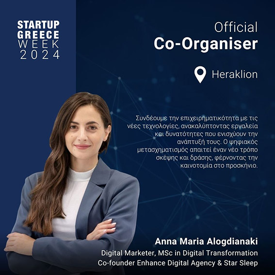 Το Startup Greece Week, μια πρωτοβουλία του οργανισμού Startup Greece διεξάγεται πανελλαδικά από τις 21 έως τις 27 Οκτωβρίου 2024.