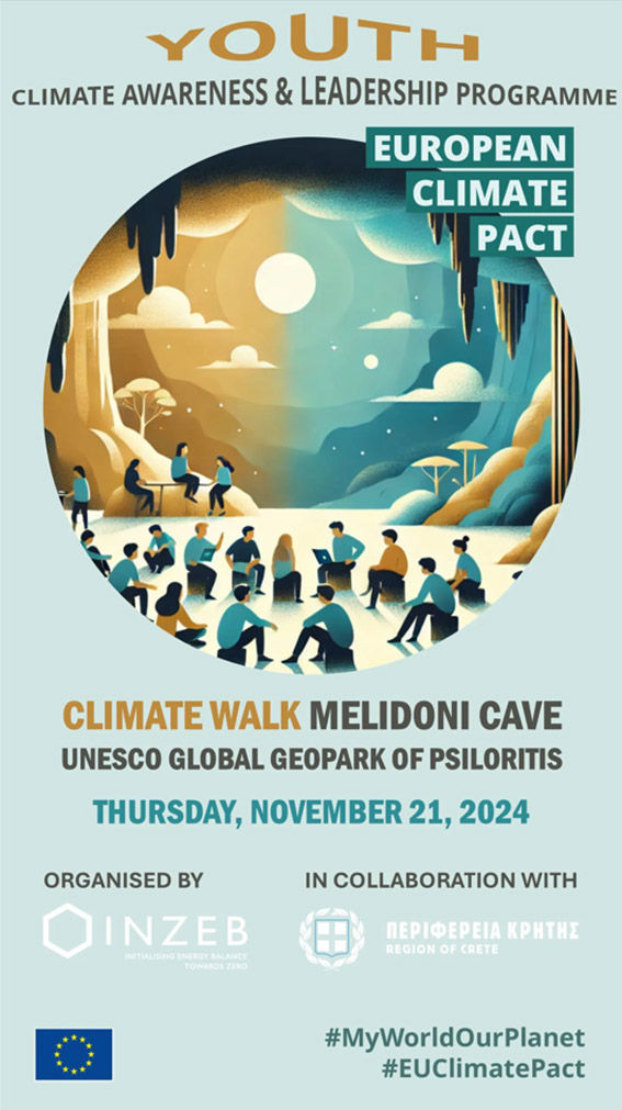 Οι δράσεις, οι οποίες συνδιοργανώνονται από τον Οργανισμό ΙΝΖΕΒ, Συντονιστή για το Ευρωπαϊκό Σύμφωνο για το Κλίμα στην Ελλάδα, και την Περιφέρεια Κρήτης, περιλαμβάνουν δύο Κλιματικούς Περιπάτους σε Γεώτοπους της UNESCO, και συγκεκριμένα στο