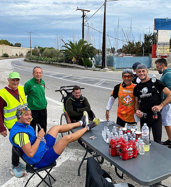 Πολλοί μάλλον δεν πίστεψαν ότι μπορεί ένας άνθρωπος να φτάσει με αμαξίδιο έως το συγκεκριμένο 120χλμ της διαδρομής οπότε και γι αυτό το λόγο δε τους περίμεναν εκεί.