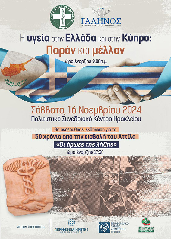 Ο Ιατρικός Σύλλογος Ηρακλείου με τον Ιατρικό Σύλλογο Αμμοχώστου (με τον οποίο έχουν πρόσφατα αδελφοποιηθεί) συνδυοργανώνουν ημερίδα με τίτλο :