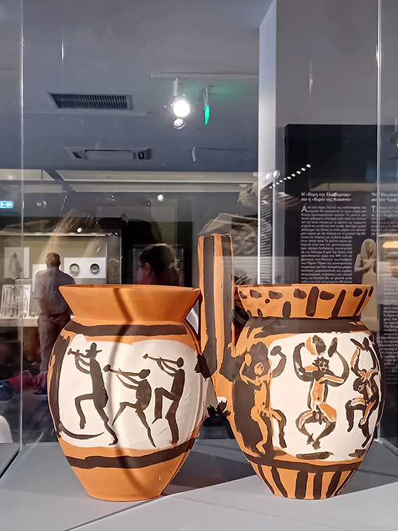 Στη μουσειακή αναπαράσταση “η χαρά της ζωής” κεραμικά του Πικάσο στα οποία αφιερώθηκε για πολλά χρόνια ως το τέλος της ζωής του, σχέδια και χαρακτικά, σύνολο 62 έργων μαζί με 24 τεκμήρια του Μουσείου της Αρχαίας Ελεύθερνας, αιχμαλώτισαν το βλέμμα και τη σκέψη, ακόμη και του πιο απαιτητικού αποδέκτη και αδρανοποίησαν τον συμβατικό χρόνο για τη θέαση τους!!! Κατάφεραν να αιφνιδιάσουν θετικά το κοινό εγείροντας “το γιατί και το πως” στην παραγωγή νοημάτων, σε αυτή την μοναδική εμπνευσμένη από τους επιμελητές συνομιλία.