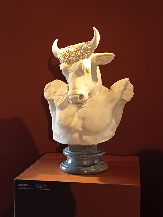 Όπως έχει γραφτεί άλλωστε, ο ίδιος αντιλαμβανόταν τον εαυτό του ως Μινώταυρο για την τεράστια φυσική του δύναμη και ενέργεια[x] Ένας μαρμάρινος Μινώταυρος ο οποίος αποτέλεσε δάνειο από το Μουσείο του Βατικανού κορμός και κεφαλή- του 1ου μ.Χ. αιώνα από ελληνικό πρότυπο του 5ου π.Χ. σε στρατηγική θέση της μουσειακής αφήγησης, ίσως υπήρξε το πιο πολυφωτογραφημένο έκθεμα της έκθεσης στο Μουσείο του αρχαιολογικού χώρου της Ελεύθερνας.