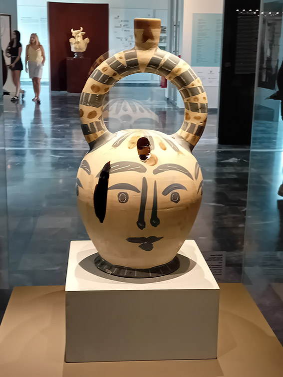 Επίσης να σημειώσω εδώ ότι είναι η πρώτη φορά που το Κεντρικό Αρχαιολογικό Συμβούλιο, συναίνεσε και έδωσε άδεια μέσα στις προθήκες του αρχαιολογικού Μουσείου να τοποθετηθούν έργα μοντέρνας Τέχνης, έργα του Πικάσο σε μια αγαστή συνομιλία, που το ένα δεν προσβάλλει το άλλο, πέραν όσων άλλων έργων του μεγάλου καλλιτέχνη εκτίθενται σε χωριστές προθήκες, καθώς και στην αίθουσα των περιοδικών εκθέσεων.