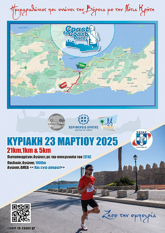 Στις 23 ΜΑΡΤΙΟΥ 2025 θα πραγματοποιηθεί το Coast to Coast Race