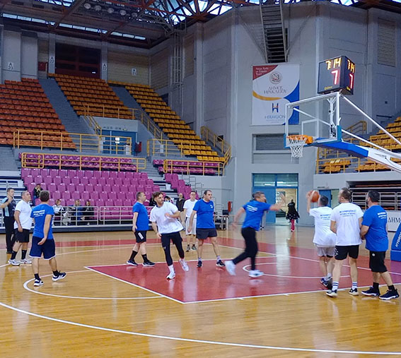 που συμμετείχαν στον φιλανθρωπικό αγώνα μπάσκετ που πραγματοποιήθηκε στο Κλειστό Γυμναστήριο Νέας Αλικαρνασσού.