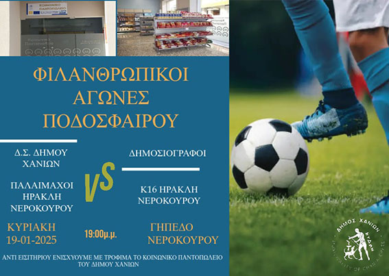 στο Γήπεδο Νεροκούρου, με σκοπό την ενίσχυση του Κοινωνικού Παντοπωλείου του Δήμου Χανίων.