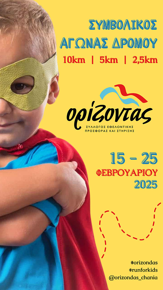 Ο Σύλλογος “Ορίζοντας” με αφορμή την Παγκόσμια Ημέρα κατά του Παιδικού Καρκίνου διοργανώνει συμβολικό Αγώνα Δρόμου – Δυναμικού Περπατήματος αποστάσεων 2,5χλμ, 5χλμ και 10χλμ, για μικρούς και μεγάλους!
