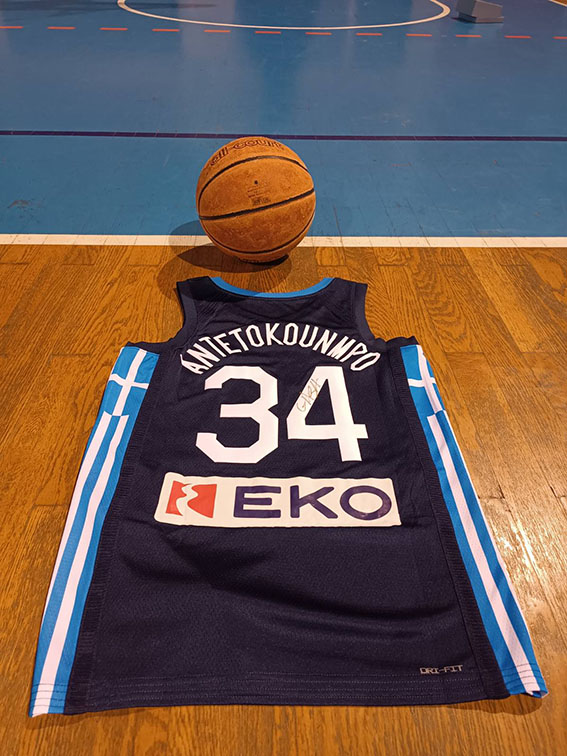 Η εμφάνιση Εθνικής Ελλάδος του Giannis Antetokounmpo, υπογεγραμμένη από τον ίδιο και προσφορά της Ελληνικής Ομοσπονδίας Καλαθοσφαίρισης, θα κληρωθεί κατά τη διάρκεια του Φιλανθρωπικού Αγώνα Μπάσκετ.
