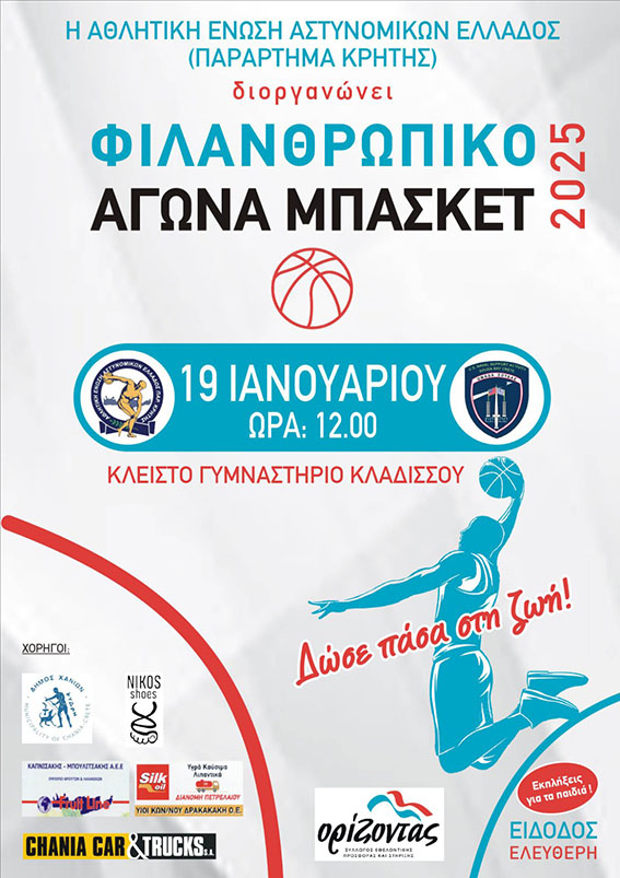 Η Αθλητική Ένωση Αστυνομικών Ελλάδος – Παράρτημα Κρήτης διοργανώνει φιλανθρωπικό αγώνα μπάσκετ για την στήριξη του «Ορίζοντα» και με σύνθημα: