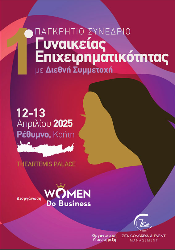 με Διεθνή Συμμετοχή, στις 12 και 13 Απριλίου 2025, στο Theartemis Palace, στο Ρέθυμνο, όλους/-ες/-α όσους/-ες/-α υποστηρίζουν και είναι κομμάτι της γυναικείας επιχειρηματικότητας.