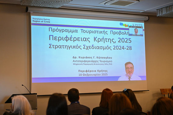 Μίλησαν ο Αντιπεριφερειάρχης Τουρισμού Κρήτης, Δρ. Κυριάκος Γ. Κώτσογλου, παρουσιάζοντας τους αειφόρους πυλώνες του Προορισμού Κρήτη, μέσα από τη《Στρατηγική Τουρισμού της Περιφέρειας Κρήτης 2024-2028》και ο Αντιδήμαρχος Οικονομικών & Τουρισμού του Δήμου Ηρακλείου, κ. Γιώργος Αγριμανάκης, που παρουσίασε το brand Ηράκλειο «loveHER/5 Senses/ 365 Days».
