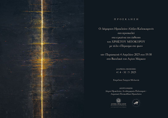«Πέρασμα στο Φως» είναι ο τίτλος της νέας έκθεσης του ζωγράφου Χρήστου Μποκόρου, που θα φιλοξενηθεί με ιδιαίτερη χαρά στη Βασιλική του Αγίου Μάρκου από τον Δήμο Ηρακλείου, την Αντιδημαρχία Πολιτισμού και την Δημοτική Πινακοθήκη Ηρακλείου με τα εγκαίνια να πραγματοποιούνται την