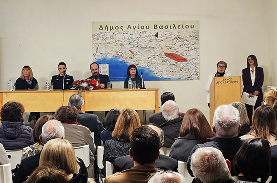 Με αφορμή την Παγκόσμια Ημέρα της Γυναίκας ο Δήμος Αγίου Βασιλείου διοργάνωσε εκδήλωση το βράδυ του Σαββάτου στην κατάμεστη αίθουσα εκδηλώσεων του Δημαρχείου με θέμα την ενδοοικογενειακή βία με σκοπό την ενημέρωση και την ευαισθητοποίηση του κοινού.