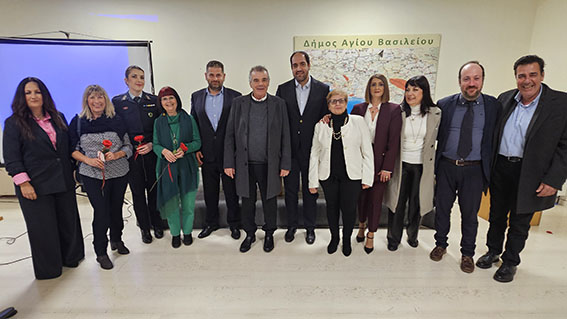 Ο Δήμαρχος Αγίου Βασιλείου Γιάννης Ταταράκης, καλωσορίζοντας τους παρευρισκόμενους, τόνισε τη δέσμευση του Δήμου στην προώθηση της ισότητας των φύλων και στην ουσιαστική στήριξη των γυναικών που βρίσκονται αντιμέτωπες με βία και διακρίσεις, αναφέροντας ότι