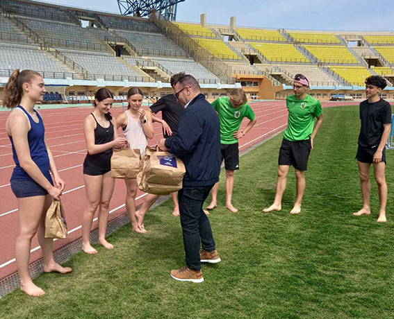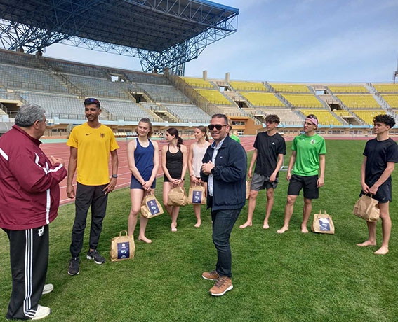 Ο Αντιδήμαρχος Αθλητισμού Γιάννης Τσαπάκης και ο Συντονιστής της εγκατάστασης του Παγκρητίου Σταδίου Δημήτρης Τσιράκος είχαν την ευκαιρία να μιλήσουν με τους αθλητές, ενώ εθιμοτυπικά πρόσφεραν στην ξένη αποστολή αναμνηστικά δώρα ευχαριστώντας τους για την επιλογή της πόλης μας ως μέρος της προετοιμασίας τους.