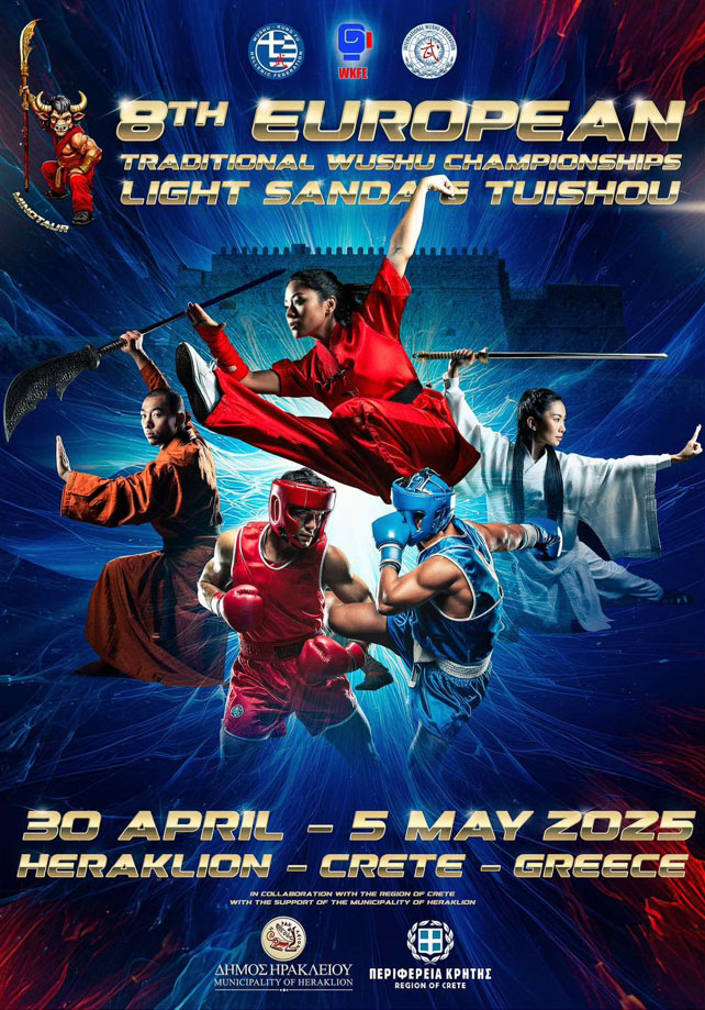 Η Περιφέρεια Κρήτης, η Ελληνική Ομοσπονδία Γου Σου Κουνγκ Φου και ο Δήμος Ηρακλείου συνδιοργανώνουν το 8ο Ευρωπαϊκό Πρωτάθλημα Γου Σου Κουνγκ Φου από τις 2 έως και τις 5 Μαΐου 2025 στο κλειστό Γυμναστήριο Νέας Αλικαρνασσού.